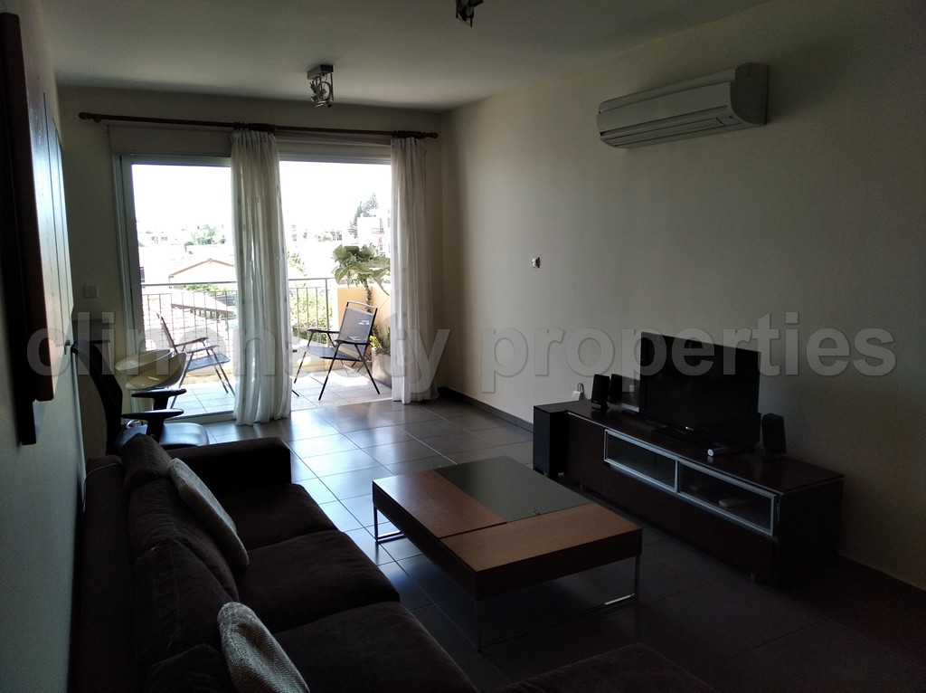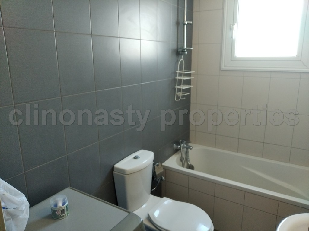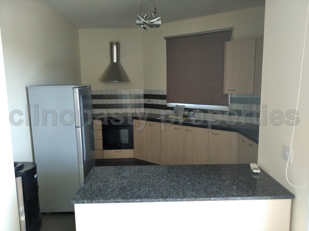 For rent: Apartment 90s.m. (2nd) with 2 bedrooms and 1 WC - furnitured - build in 2008 with heating Underfloor ΑΗΚ - Air Condition. It has, kitchen, living room, Storage Room, Balcony, Refrigerator, Washing Machine, Oven-Stove-Vent Hood, Fitted closets, parking.