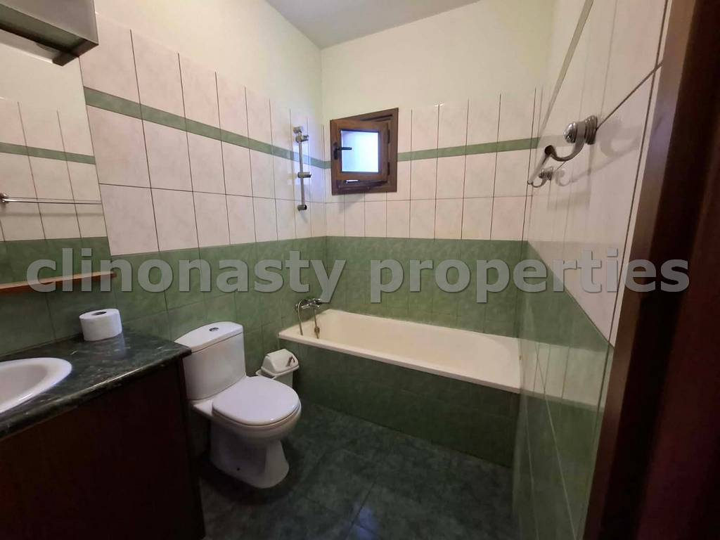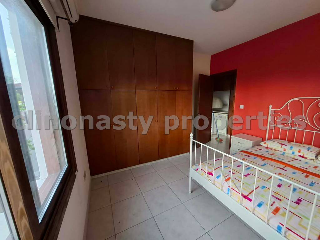 For rent: Apartment 75s.m. (Upper storey) with 2 bedrooms and 1 WC - furnitured - build in 2009 with heating Air Condition. It has, kitchen, living room, Balcony, Refrigerator, Washing Machine, Oven-Stove-Vent Hood, Fitted closets, parking. Pets are allowed.